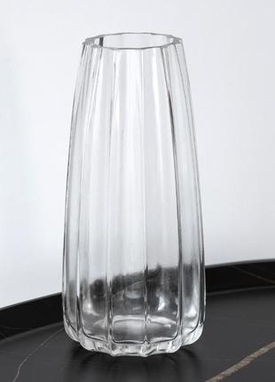 Ваза из бесцветного стекла ребристая. Можем покрасить в любой цвет.